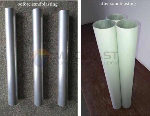 -roller's rotation guides workpieces to rotate while sandblasting