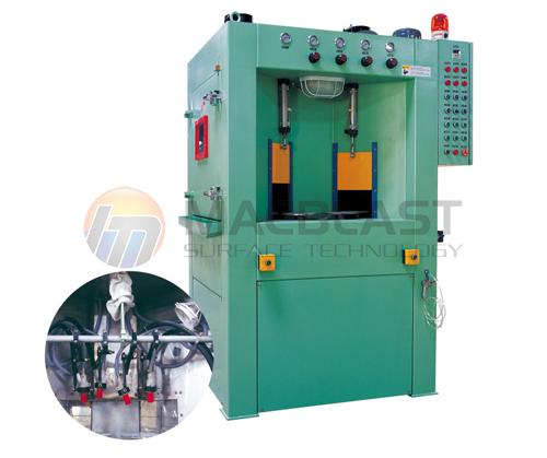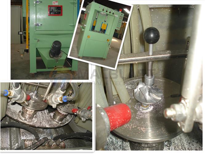 This PLC indexing turntable type automatic wet sandblasting machine is designed and developed for complex structures like turbo impellers or car rims,etc.it is a versatile, can switch quickly from cleaing one part to another, changing fixtures and repositioning blast guns just takes a few minutes, our ma-1212w-4 come figured for either 2-station or single station indexing. two-station indexing puts 2 parts in each of blast, blow-off and load positions.Single station indexing allows multi-step blasting, like inside, outside, top and bottom.